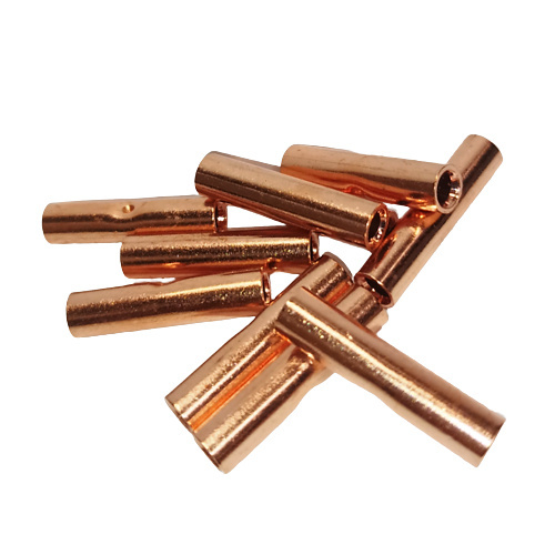 Tulejka łączeniowa nieizolowana miedziana to element łączący, który służy do połączenia dwóch przewodów elektrycznych. Jest wykonana z miedzi, która jest dobrym przewodnikiem elektrycznym, co zapewnia dobre połączenie elektryczne. Tulejka jest nieizolowana, co oznacza, że nie ma na niej warstwy izolacji, dzięki czemu może być stosowana w miejscach, gdzie nie jest wymagana izolacja elektryczna. Zastosowanie tulejki łączeniowej nieizolowanej miedzianej to przede wszystkim połączenie przewodów w instalacjach elektrycznych, elektronicznych i telekomunikacyjnych.