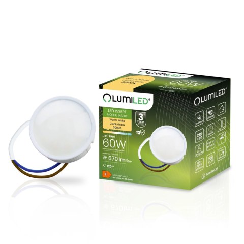 Wkład do Opraw LED Moduł INSERT Mleczny 7W = 60W 120° 670lm 3000K Ciepła