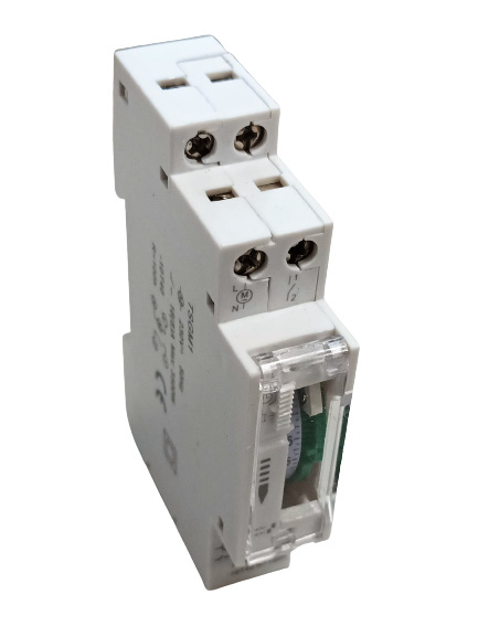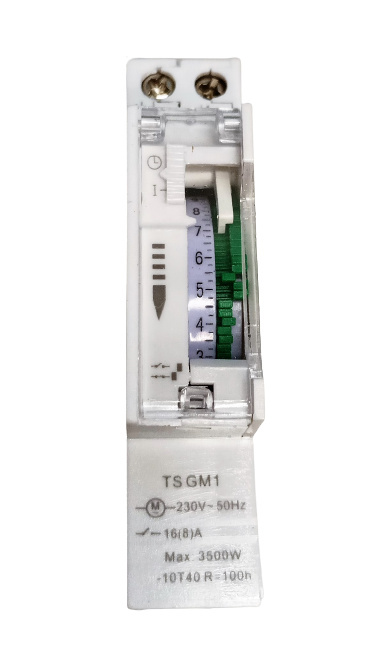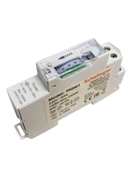 Wyłącznik czasowy mechaniczny 24h SCHELINGER to urządzenie, które służy do automatycznego włączania i wyłączania oświetlenia, urządzeń grzewczych, wentylacji lub innych urządzeń elektrycznych w określonych godzinach dnia. Jest on montowany na szynę DIN, co ułatwia jego instalację i pozwala na łatwe włączenie i wyłączenie zasilania.