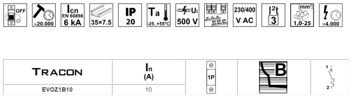 Wyłącznik nadprądowy B 10A 1P TRACON