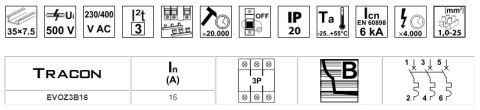 Wyłącznik nadprądowy 16A B 3P TRACON