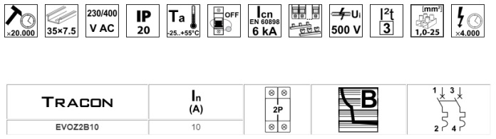 • Wyłącznik nadprądowy B 10A 2P TRACON