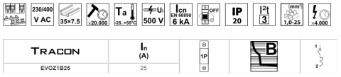 Wyłącznik nadprądowy B 25A 1P TRACON