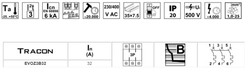 Wyłącznik nadprądowy B 32A 3P TRACON