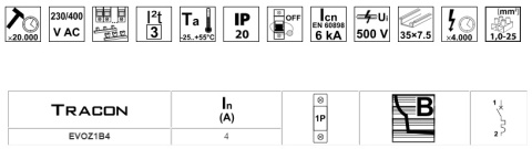 Wyłącznik nadprądowy B 4A 1P TRACON