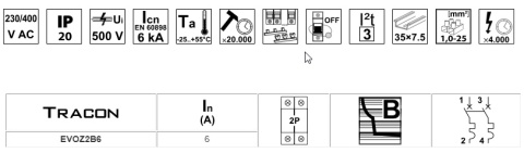 Wyłącznik nadprądowy B 6A 2P TRACON