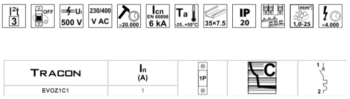 • Wyłącznik nadprądowy C 1A 1P TRACON