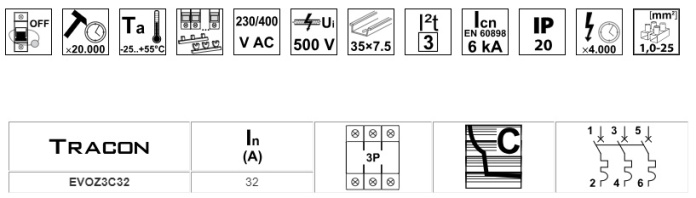 Wyłącznik nadprądowy C 32A 3P TRACON
