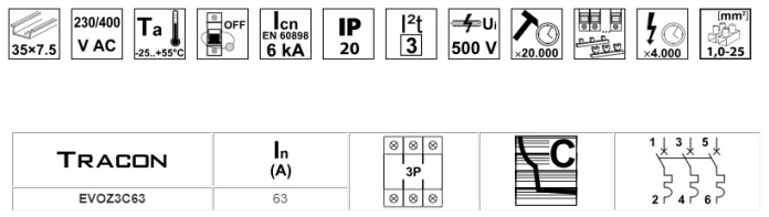 Wyłącznik nadprądowy C 63A 3P TRACON