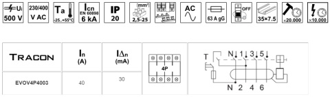 - Przekrój przyłączanego przewodu jednodrutowego: 2,5 - 25 mm²