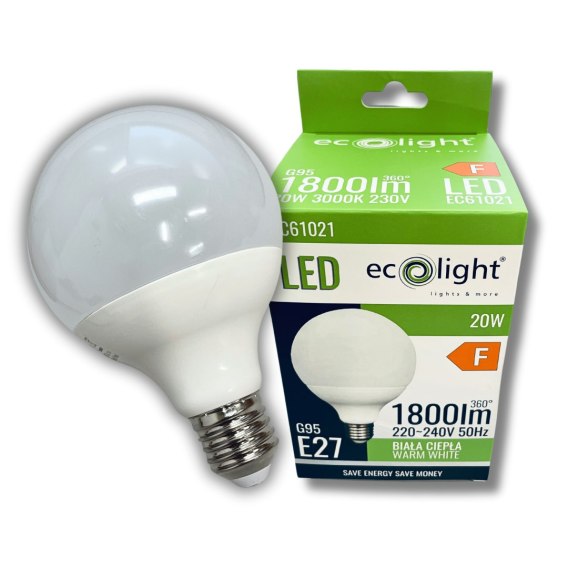 ŻARÓWKA LED E27 20W 3000K BARWA CIEPŁA 1800lm MOCNA G95