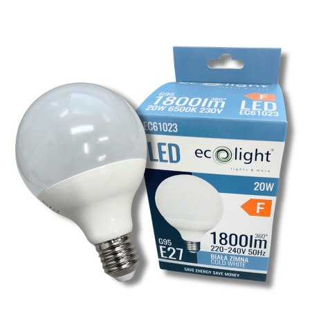 ŻARÓWKA LED E27 20W 6500K Barwa Zimna 1800lm MOCNA G95 Kula