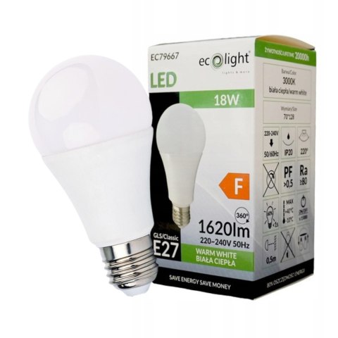 ⚡️Żarówka CLASSIC E27 18W 3000K 1620lm to doskonała propozycja dla osób poszukujących energooszczędnego oświetlenia o długiej żywotności. Ta efektywna żarówka LED o mocy 18W generuje jasne światło o temperaturze barwowej 3000K, co zapewnia przyjemną atmosferę w każdym pomieszczeniu.