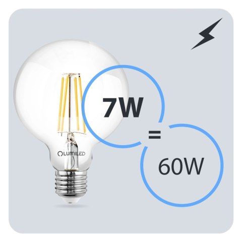 • Żarówka Dekoracyjna Kula LED E27 G125 7W = 60W 806lm 3000K Ciepła Filament