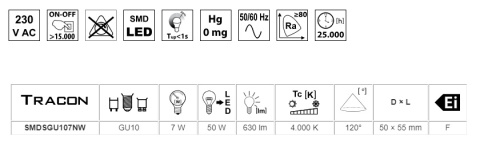 Żarówka GU10 7W LED 4000K z chipem Samsung 120°, 630lm