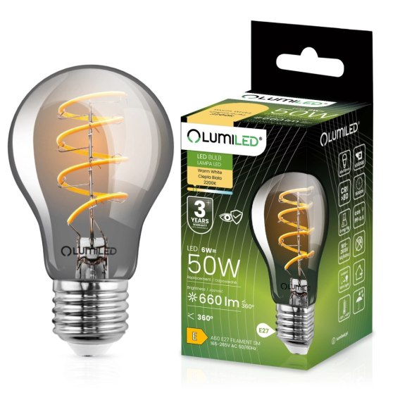 ⚡️ Żarówka LED A60 E27 6W = 50W 660lm 2200K Ciepła 360° Filament Dymiona to elegancka i energooszczędna opcja, która dodaje przytulnego, ciepłego światła w każdym pomieszczeniu. Dzięki zastosowaniu technologii Filament oraz dymionemu kloszowi, żarówka emituje ciepłe, białe światło 2200K, które tworzy wyjątkową atmosferę w każdej przestrzeni. Kąt świecenia 360° sprawia, że światło rozchodzi się równomiernie w każdym kierunku.