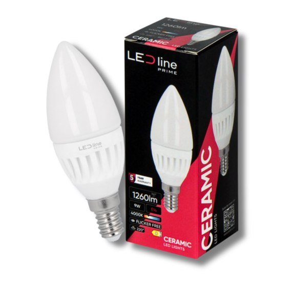 Żarówka LED E14 9W 4000K Neutralna 1260lm 170-250V C37 ŚWIECZKA LED line