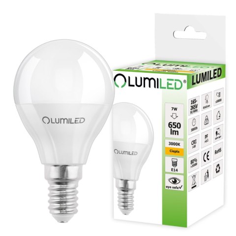 Żarówka LED E14 P45 7W = 60W 650lm 3000K Ciepła 180° LUMILED