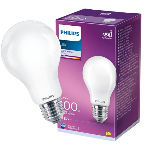 <h2>Dane techniczne:</h2><p>✔️Zasilanie: <b>230V</b></p><p>✔️Gwint: <b>E27</b></p><p>✔️Typ bańki: <b>A60</b></p><p>✔️Kształt żarówki: <b>Tradycyjna</b></p><p>✔️Strumień świetlny [lm]: <b>1521</b></p><p>✔️Moc [W]: <b>10,5</b></p><p>✔️Temperatura barwowa [K]: <b>4000</b></p><p>✔️Barwa światła: <b>Biała neutralna</b></p><p>✔️Funkcja ściemniania: <b>Nie</b></p><p>✔️Rodzaj szybki / klosza: <b>Mleczny Szkło</b></p>