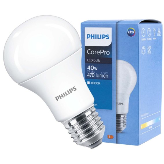 ⚡️Przejdź na energooszczędną żarówkę LED E27 A60 4,9W = 40W 470lm 4000K Neutralna 200° PHILIPS i ciesz się jasnym, białym światłem przy minimalnym zużyciu energii.⚡️