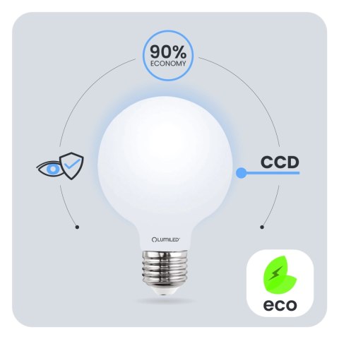 ✅ Żarówka LED G95 marki Lumiled oferuje strumień świetlny 880 lumenów, co odpowiada tradycyjnej żarówce o mocy 75W, przy zużyciu jedynie 8W. Wyposażona w trzonek E27, pasuje do większości standardowych opraw oświetleniowych. Zastosowana technologia Eye Safe oraz przetwornica CCD gwarantują brak migotania światła, co chroni wzrok i zapewnia komfort użytkowania.