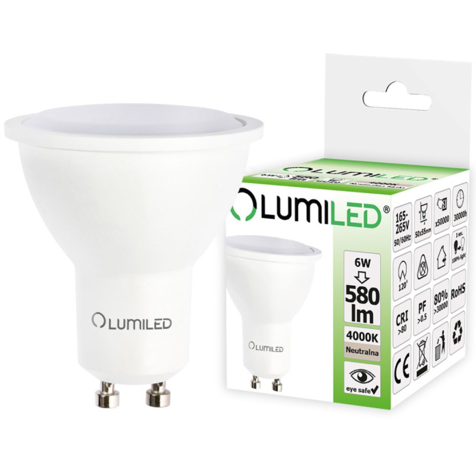 • Żarówka LED GU10 6W 580lm 4000K Neutralna 120°