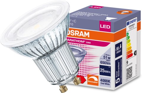 Żarówka LED GU10 7,9W = 51W 650lm 4000K Neutralna 120° CRI90 ŚCIEMNIALNA OSRAM Parathom