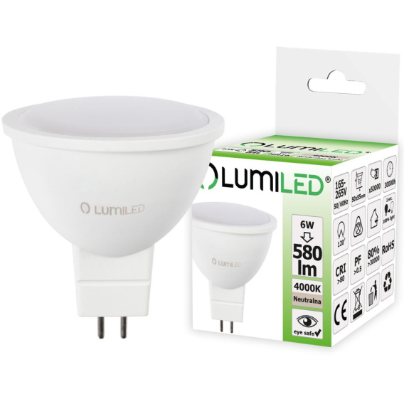 Żarówka LED GU5.3 MR16 6W = 60W 580lm 4000K Neutralna 120° LUMILED