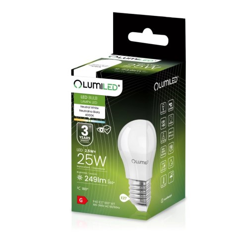 Żarówka LED Kulka E27 P40 2,5W = 25W 249lm 4000K Neutralna 180°