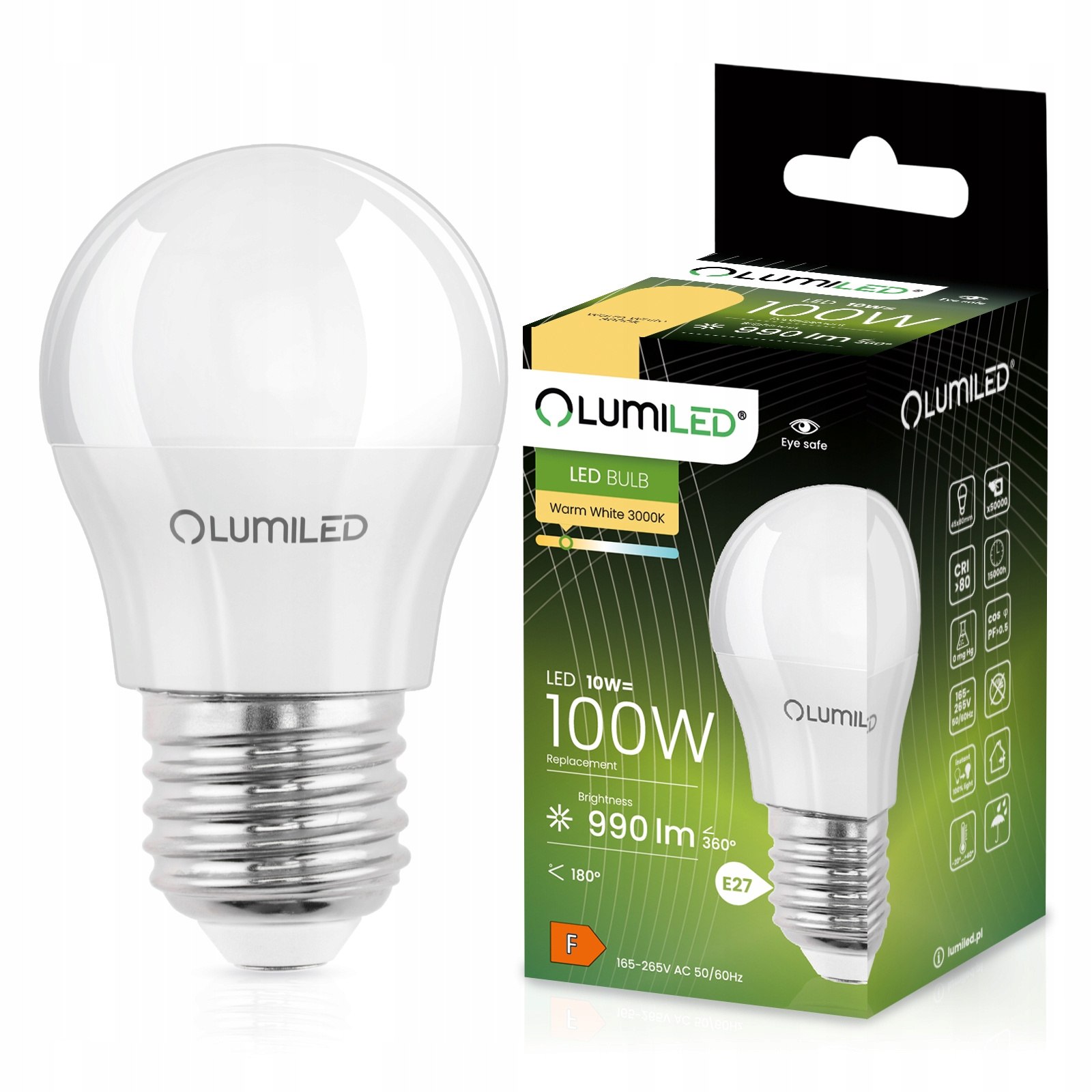 • Żarówka LED P45 E27 10W = 100W 990lm 3000K Ciepła 180° Mleczna EKO