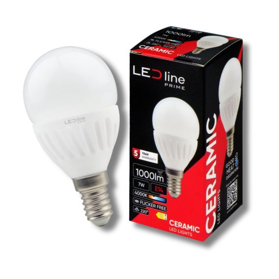 Żarówka LED line PRIME E14 7W 4000K 1000lm 170-250V KULKA G45