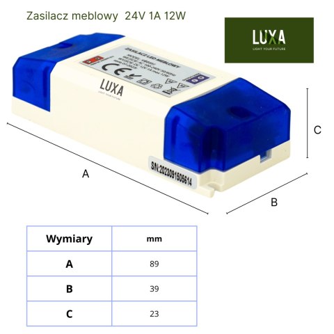 ✅ Zasilacz obsługuje napięcie wejściowe 100-240V AC oraz oferuje stabilne napięcie wyjściowe 24V DC o mocy 12W (1A MAX), co czyni go idealnym do małych systemów oświetleniowych LED. Jego wymiary 89x39x23 mm pozwalają na łatwą instalację nawet w ograniczonej przestrzeni.