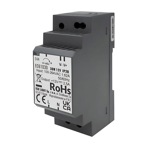 • Zasilacz na Szynę DIN 12V DC 30W Premium IP20 220-240V AC