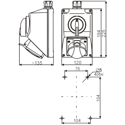 Zestaw instalacyjny budowlany składający się z gniazda siłowego 3P+N+Z 32A i łącznika krzywkowego typu lewo-prawo. Przełącznik zawiera blokadę z otworami ⌀8mm na kłódkę zabezpieczającą przed nieuprawnionym włączeniem urządzenia. Montowany na stałe natynkowo z wysoką odpornością na uszkodzenia mechaniczne i podwyższoną klasą szczelności IP54 (pyłoszczelność i bryzgoszczelność). Wykonanie gwarantuje długą żywotność wyrobu, a konstrukcja łatwość instalacji. Idealna w warsztatach, zakładach i garażach.