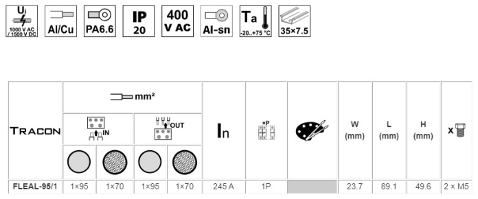 16-95mm2, max. 800VAC, max.245A
