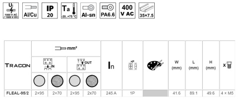 - Przekrój przewodu, wejście: 16 - 95 mm²