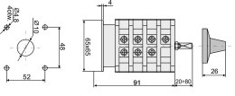 - Przełączniki wyboru zasilania (sieć-agregat)